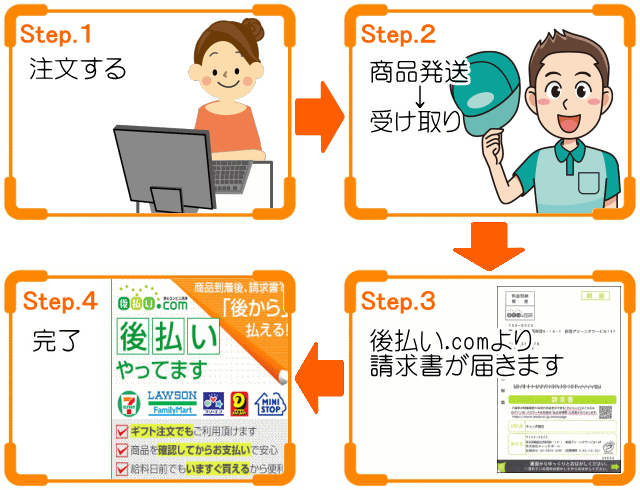 - 後払い.comの払込み受領票(コンビニ払い)、銀行振込み・郵便振替受領票を領収書としてご利用いただけます。